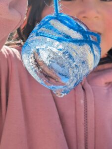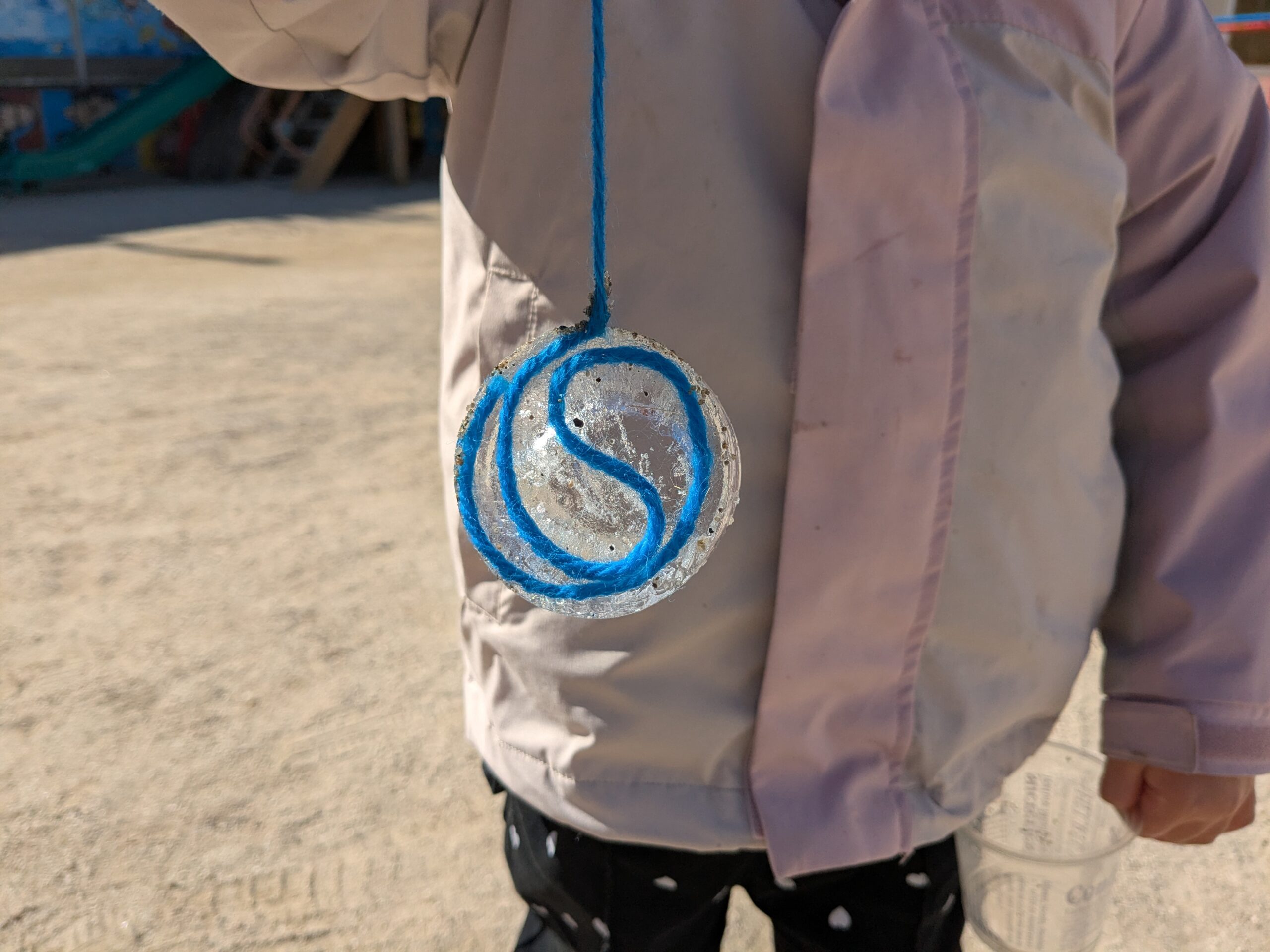 寒いときならでは 活動 2026.02.09このところ、朝は毎日氷点下で、寒くてつらい時期ではあるのですが… 容器に水と毛糸を入れて、外に置いていたものが見事に凍っていました。 子どもたちは大満足。この時期だけのお楽しみです。